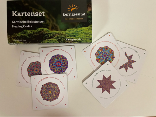 Das Mandala-Kartenset umfasst 129 Mandalas mit über 450 homöopathischen Mitteln in optimaler Potenz, die stets korrekt wirken. Es vereint Ansätze der Gesundheitsförderung zur Unterstützung karmischer und alltäglicher Belastungen. Jedes Mandala ist im Goldenen Schnitt gestaltet und basiert auf einer mathematischen Struktur mit farblich zugeordneten Buchstaben.