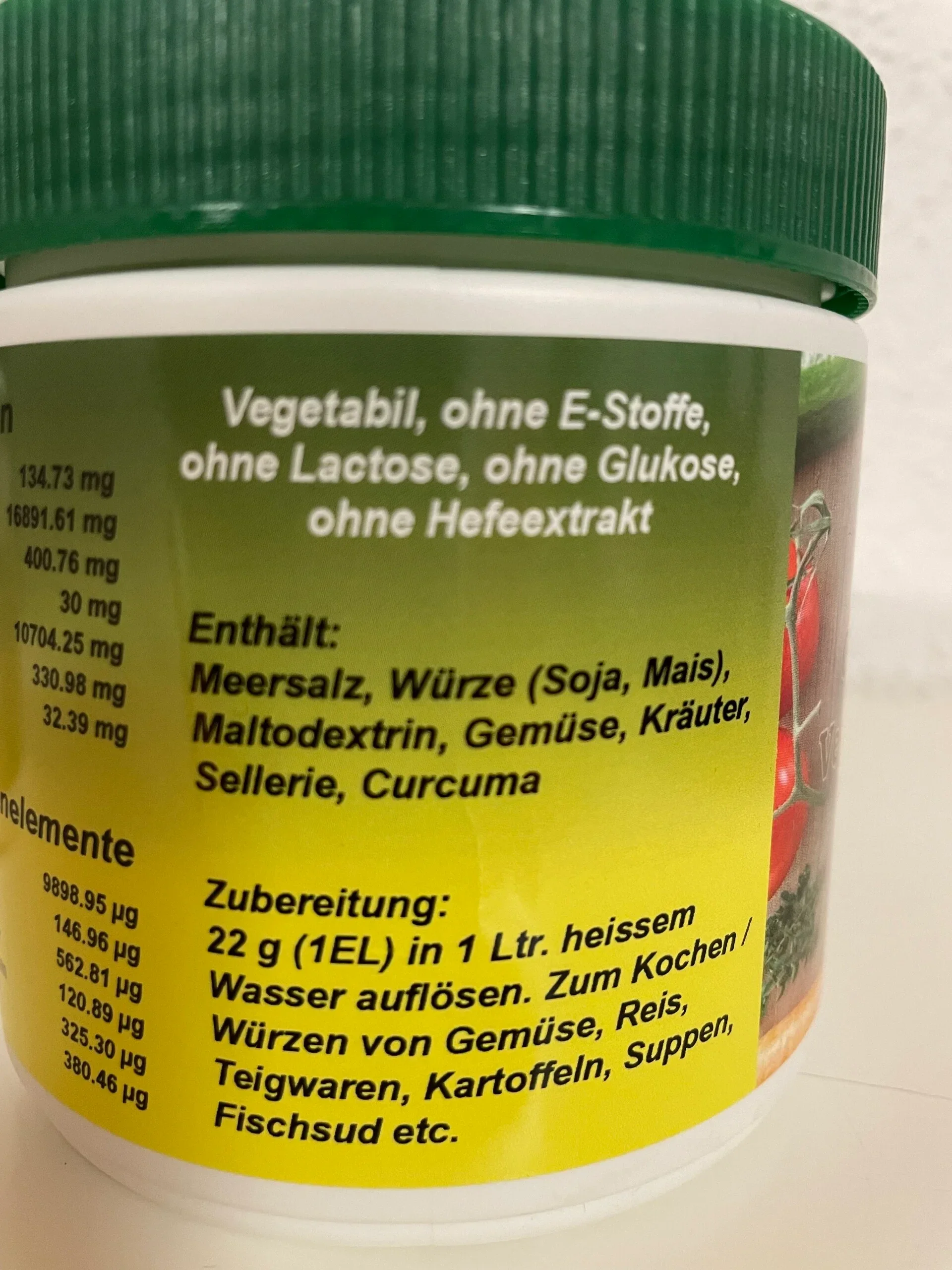 Die Gemüsebouillon mit Curcuma ist frei von Lactose, Glukose, Hefeextrakt, Farb- oder Konservierungsstoffen.